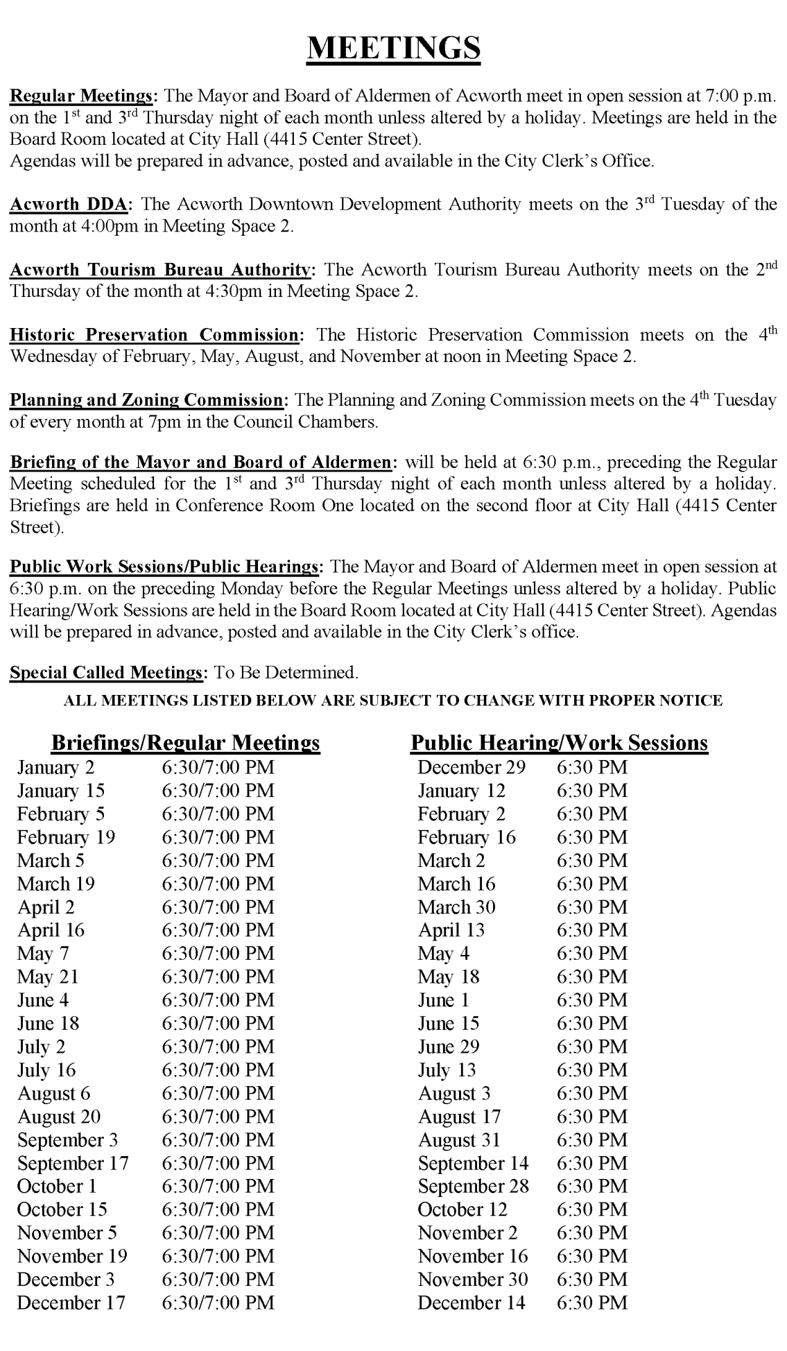 To view the current list of Mayor and Board of Aldermen meetings CLICK HERE