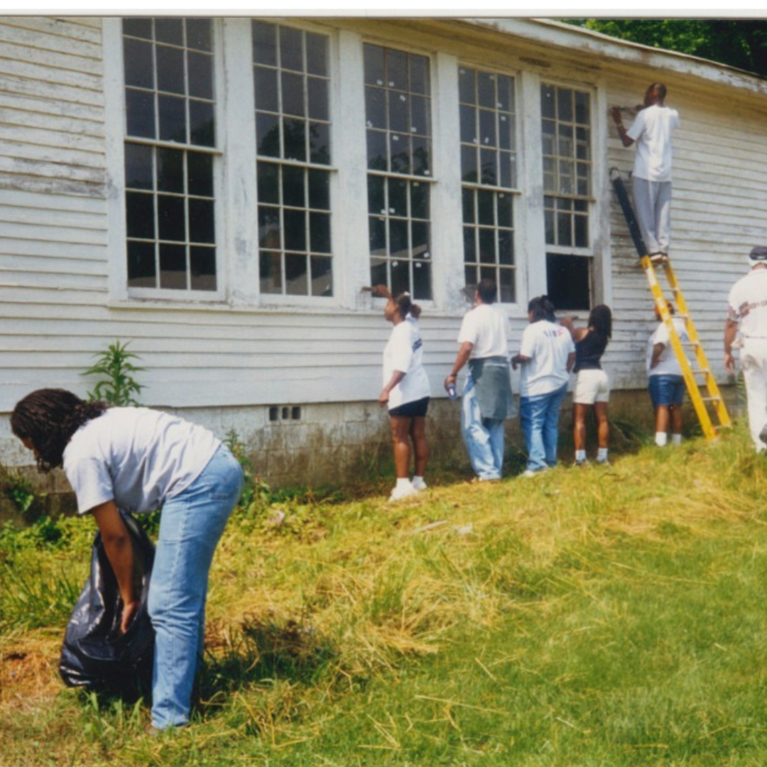Pictured above, in order from left to right: The Rosenwald School circa 1924-25, Doyal Hill circa 1970s, Dance at the Rosenwald School circa 1950s, The McConnell House before renovations, Family social at the Rosenwald School, The Roberts School, Volunteer workday at the Rosenwald School circa 2000s, Roberts School classroom.