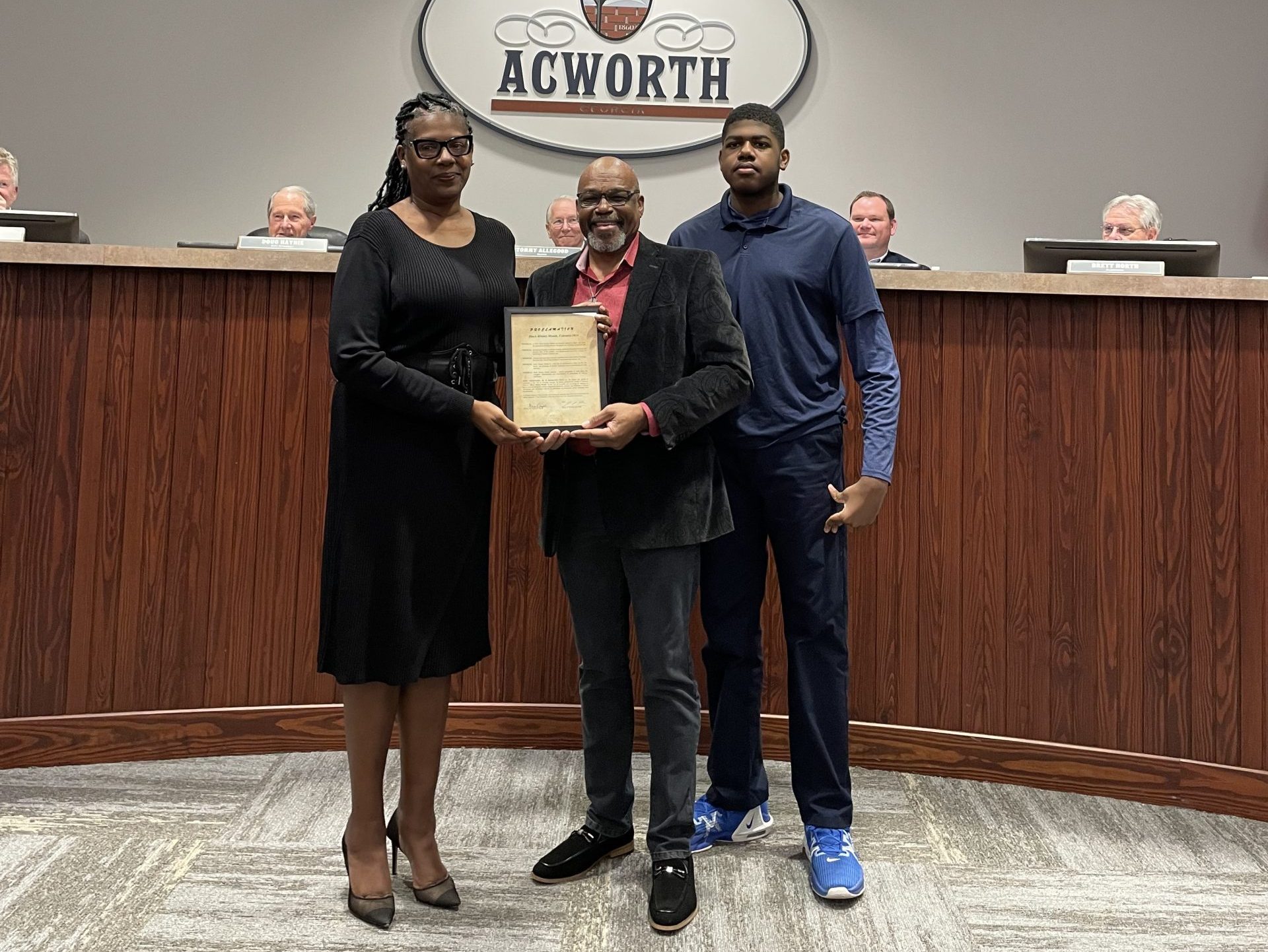 At the Thursday, February 1 regular city council meeting, Alderman Tim Houston presented the annual Black History Month Proclamation to Judge Angela Brown, the daughter of the late Leonard Hall, a former Tuskegee Airman who was the recipient of the proclamation approximately eight years ago. Black History Month is a time for all Americans to reflect on the rich history and teachings of African Americans whose contributions are vast and wide. Citizens are encouraged to join the Acworth community in celebrating the collective ingenuity, creativity, cultures, and traditions of African Americans and to participate in educational events honoring their contributions.
